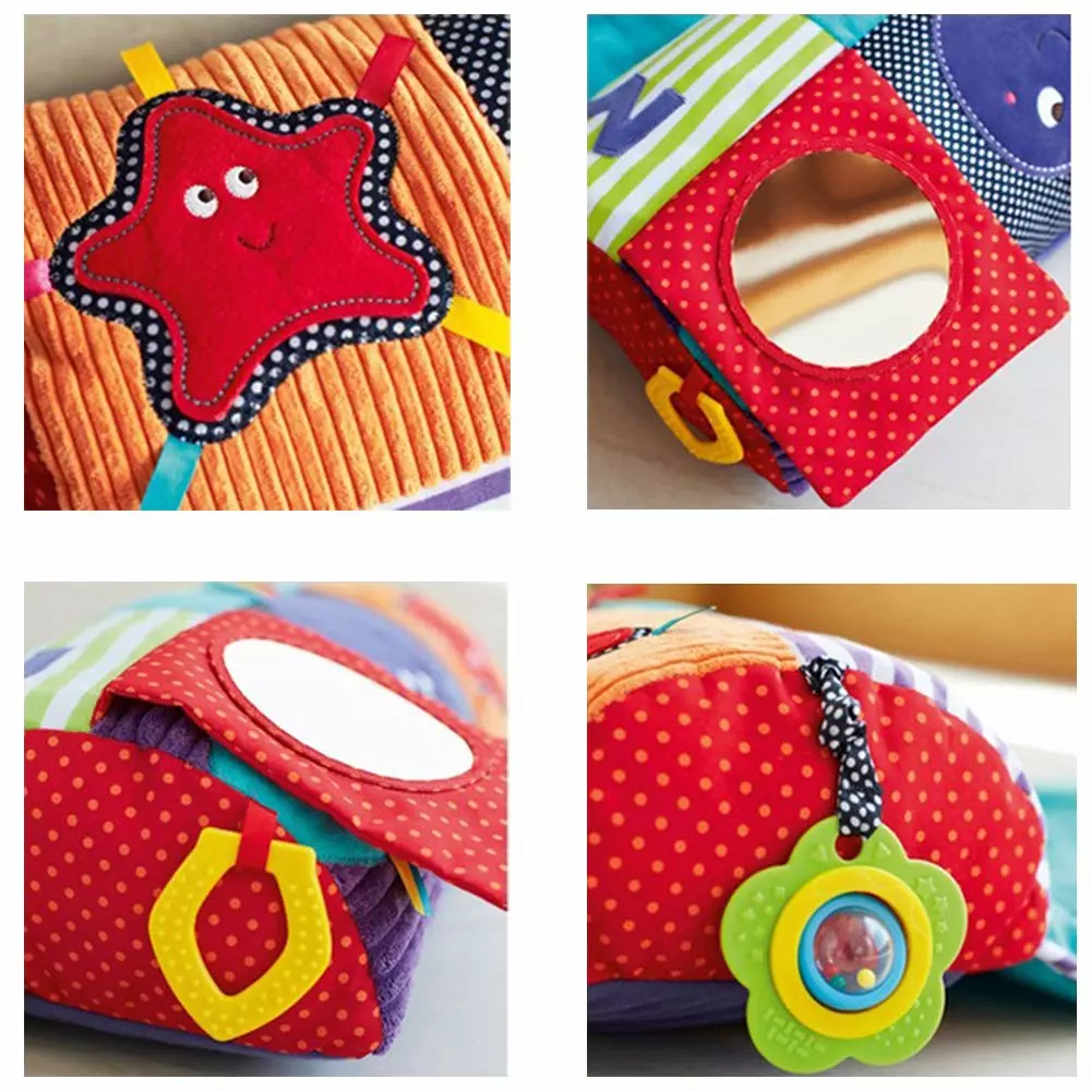 -Posee texturas, sonajeros, mordedor de silicon y espejo de seguridad.