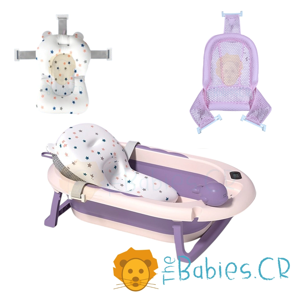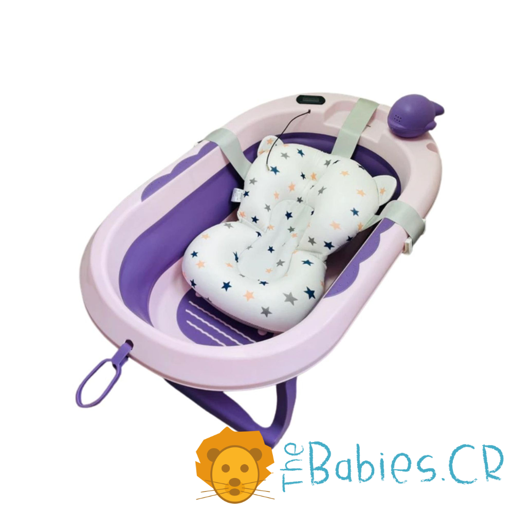 Baño seguro y confortable: incluye soporte acolchado y termómetro integrado para que siempre mantengas la temperatura ideal del agua.