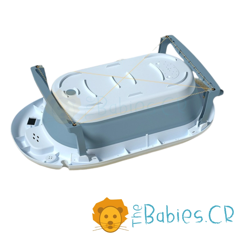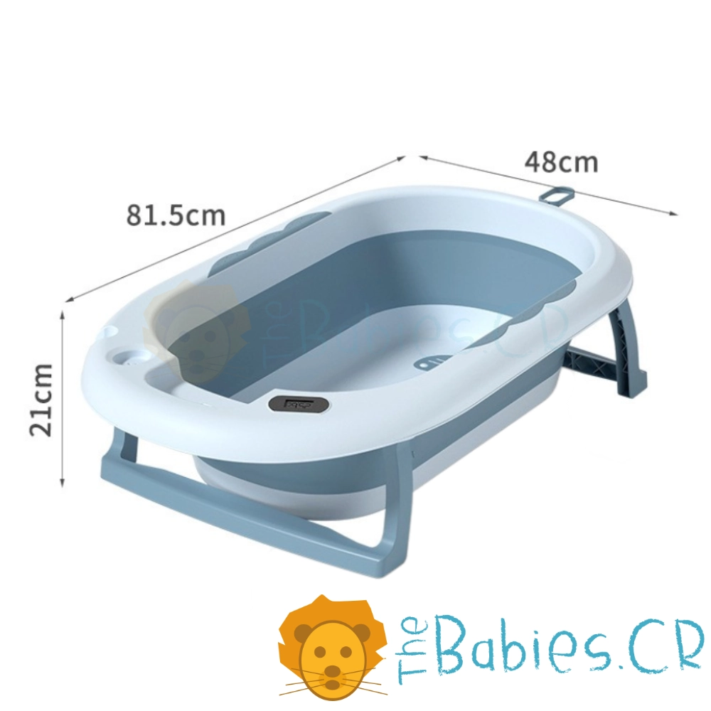Bañera Plegable para Bebé – Tina Azul con Termómetro, Tapón de Drenaje y Soporte Ajustable
