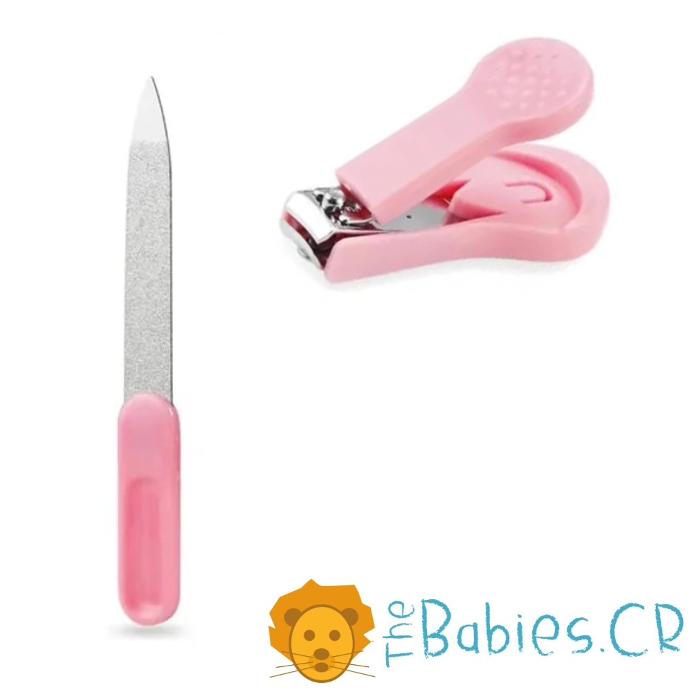 – Estuche rosado compacto con las 14 herramientas esenciales para el cuidado del bebé.