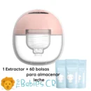 -1 Extractor eléctrico inalámbrico portátil manos libres + 60 bolsas para almacenar leche.