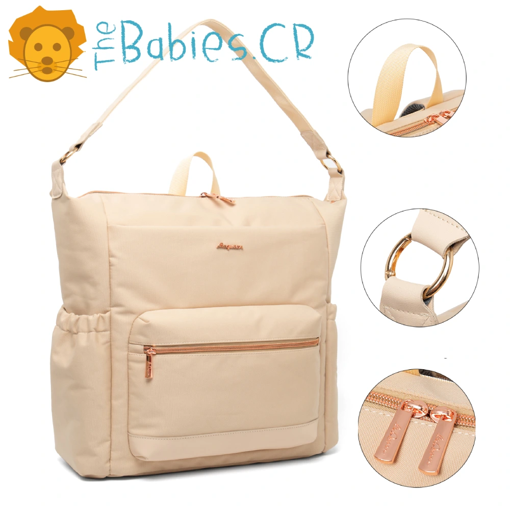 – 1 pañalera tipo mochila 2 en 1 color beige marca LeQueen.