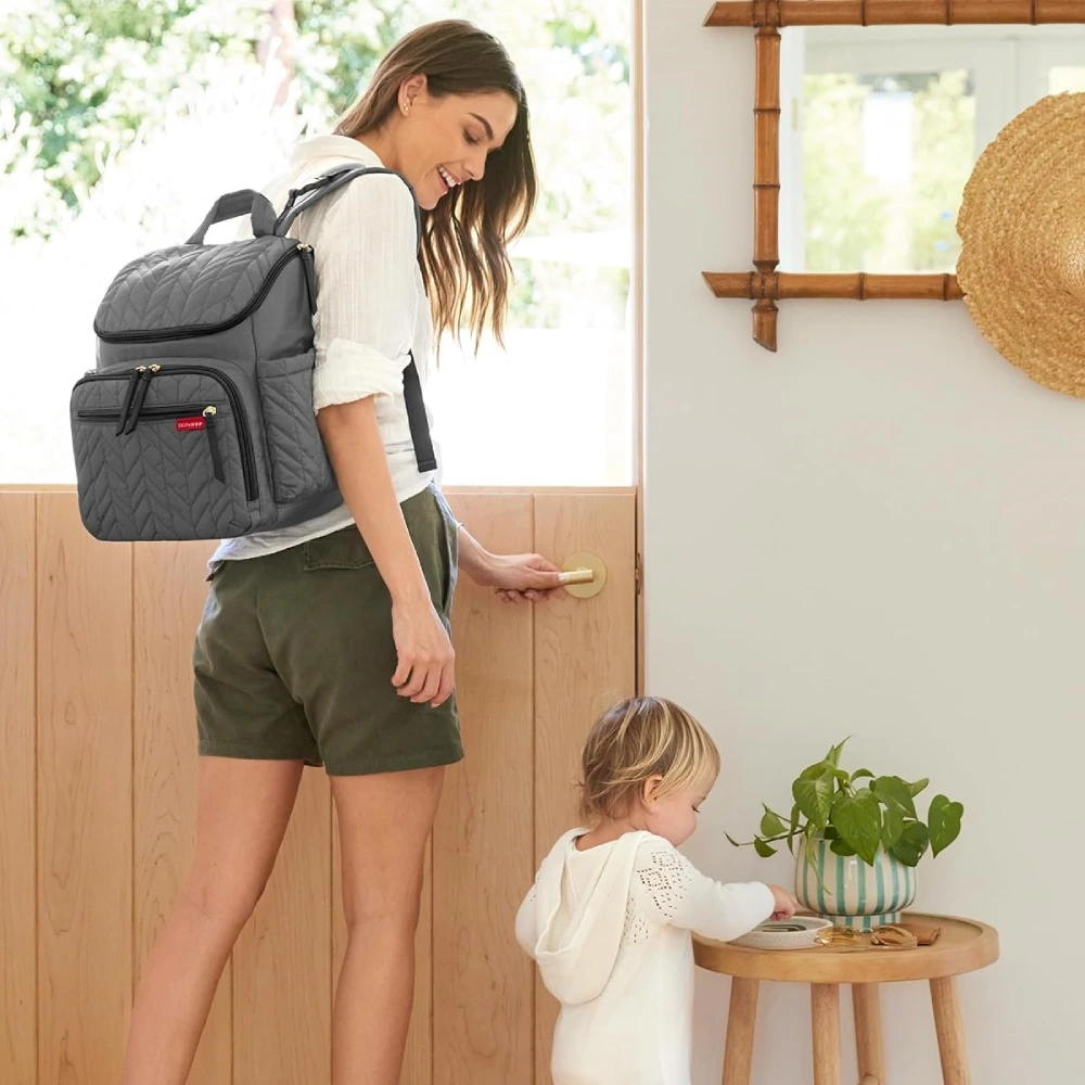 – 1 pañalera tipo mochila Forma marca Skip Hop.
