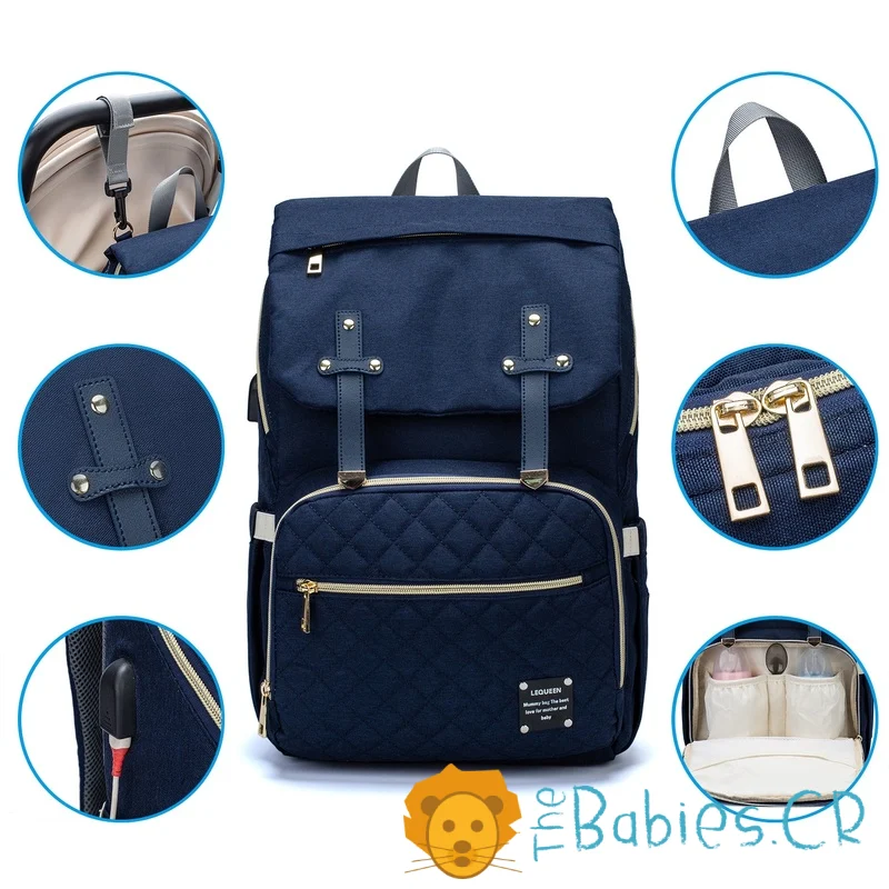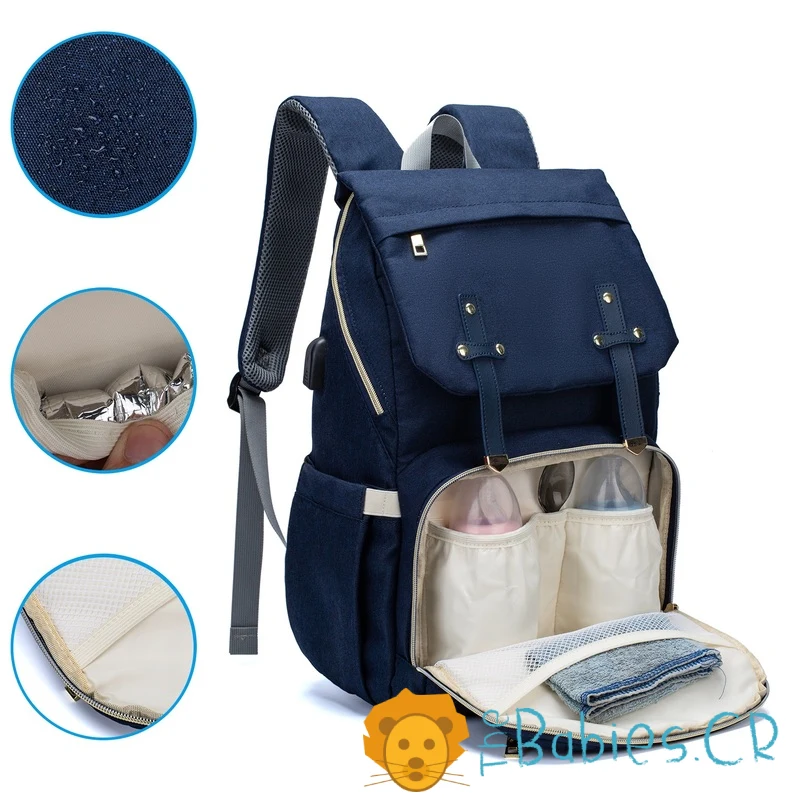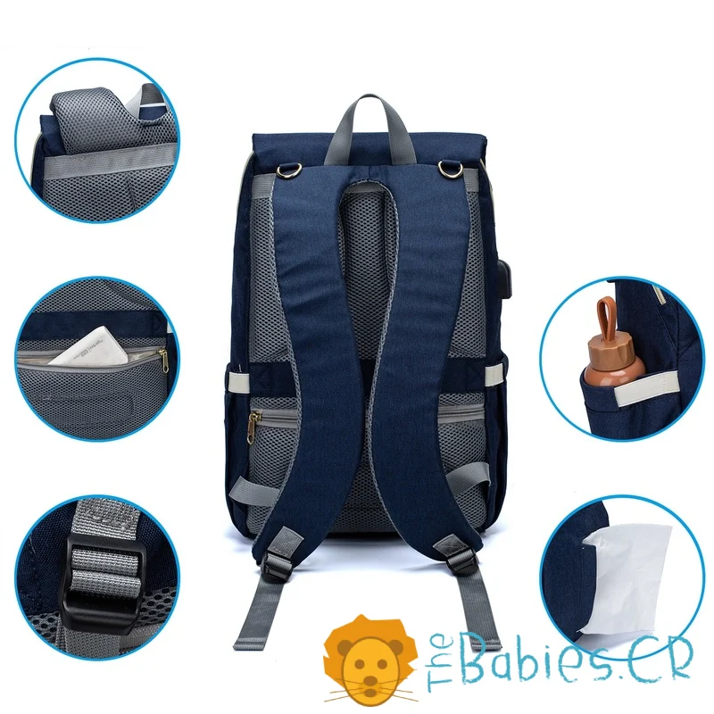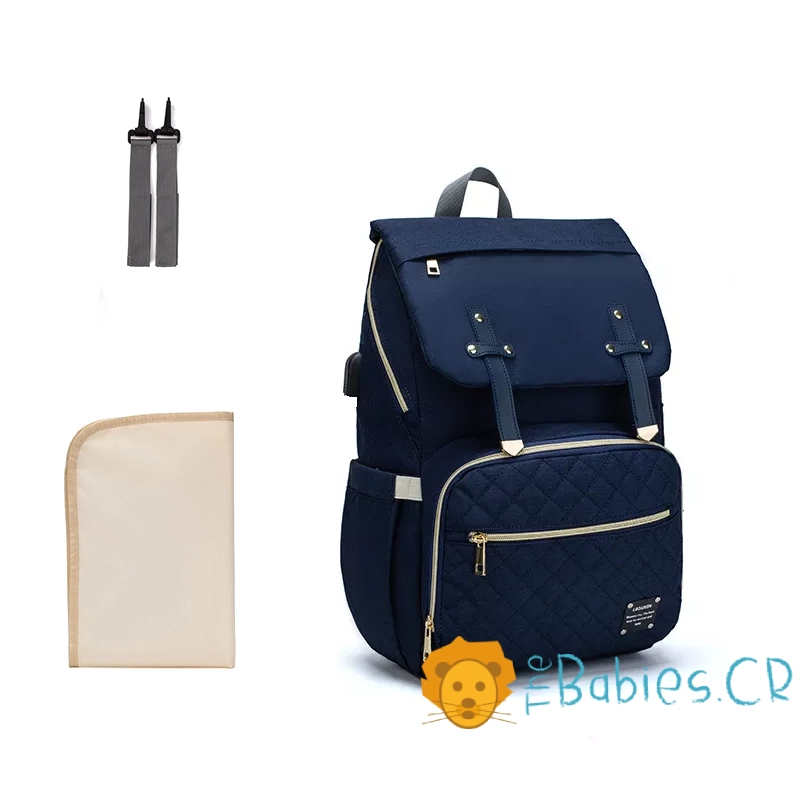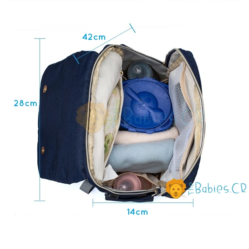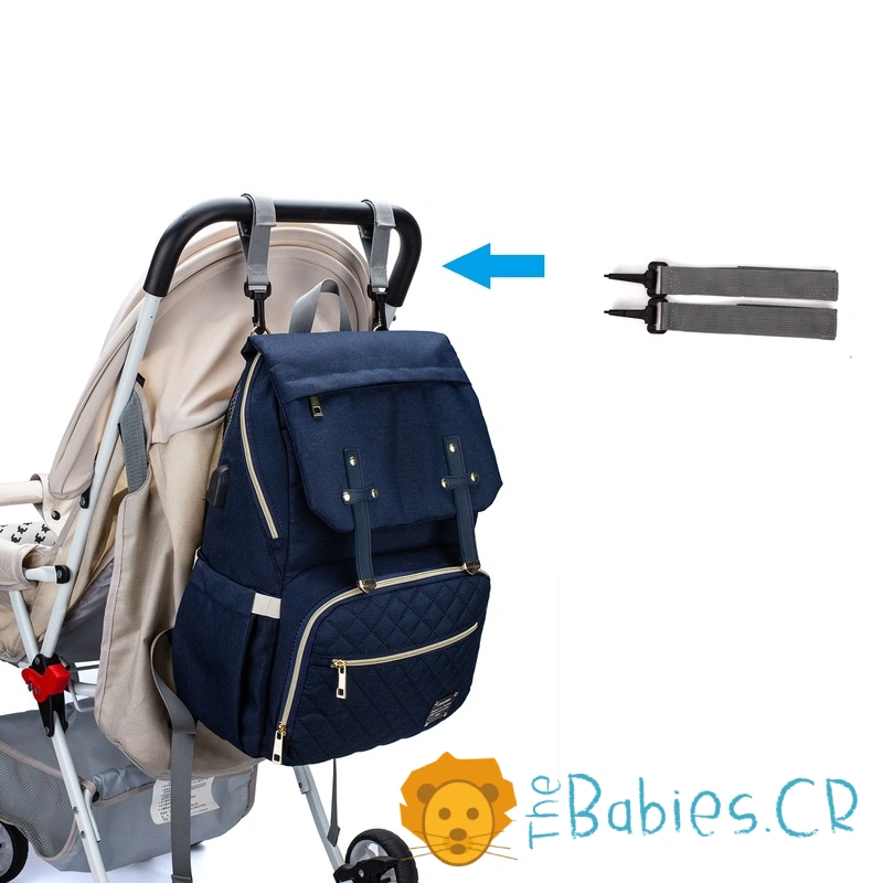 -Posee porta cambiador tipo ahulado y correas sujetadoras.