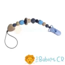 – 1 sujetador de chupeta con accesorios celestes en silicón.
